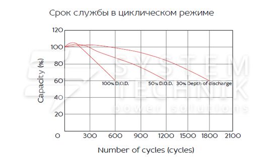 - Срок хранения без подзаряда: 6 мес. при 25°C;