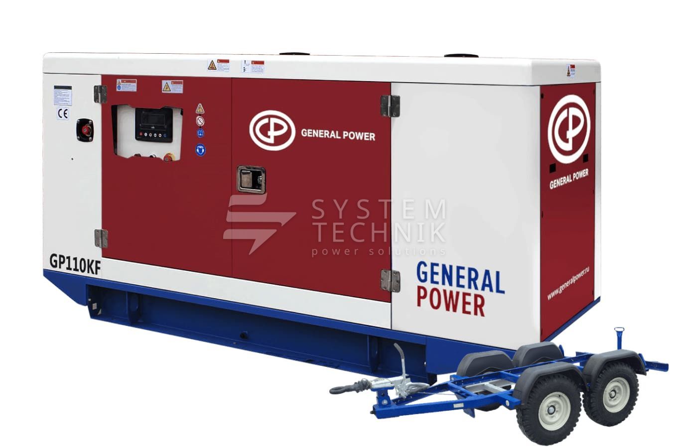 - Дизельный генератор General Power GP110KF в кожухе на прицепе