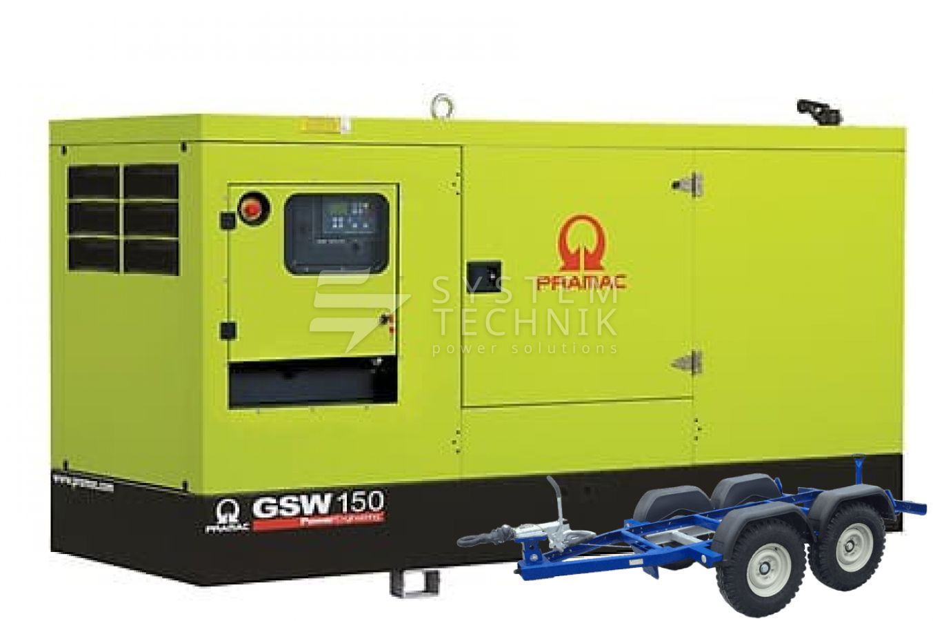 - Дизельный генератор Pramac GSW 150 V 380V В кожухе на прицепе