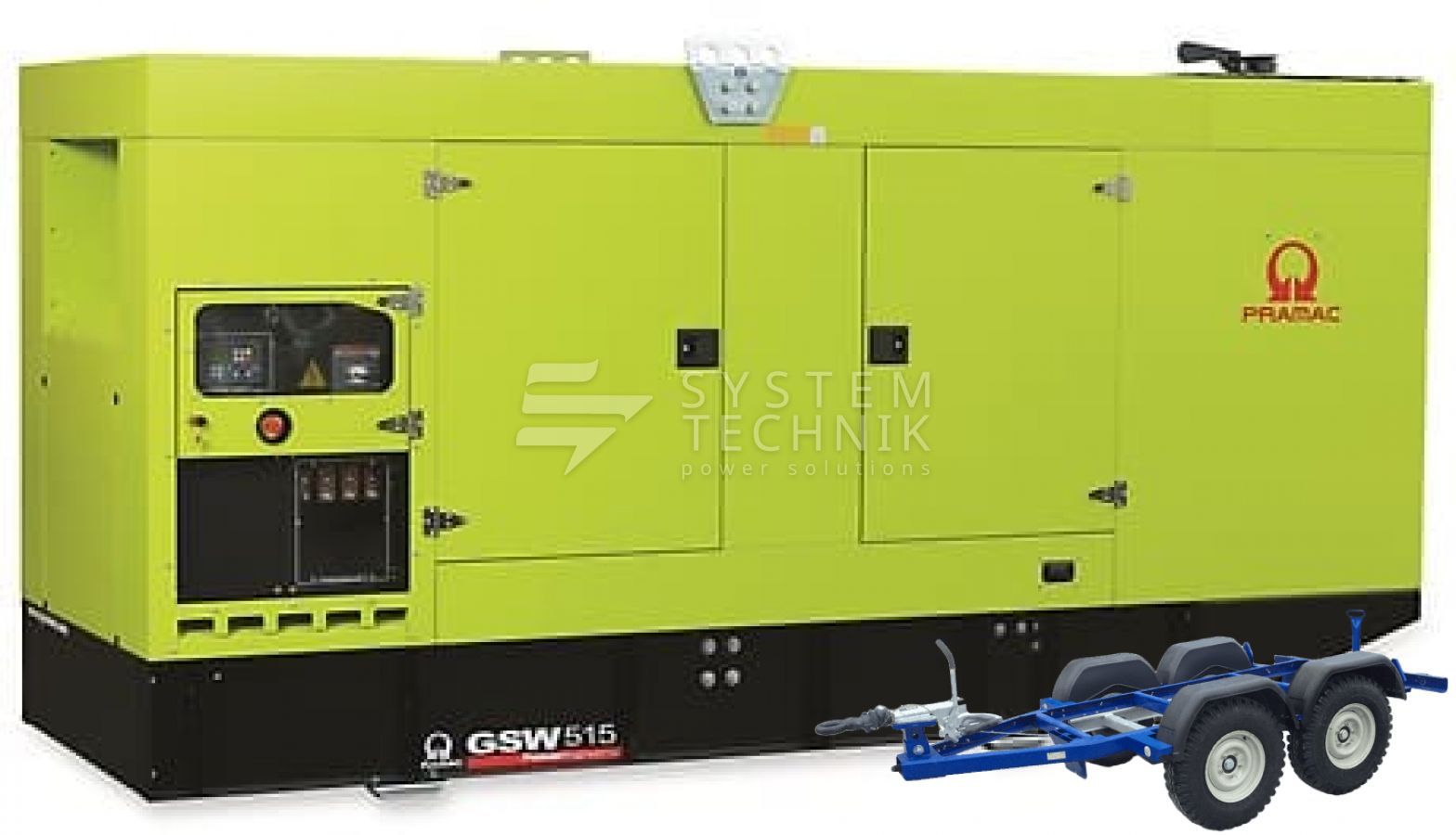 - Дизельный генератор Pramac GSW 515 P 400V В кожухе на прицепе