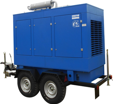 - ССМ ЭД-75-Т400-1РКМ2 (Marelli) в шумозащитном кожухе на шасси на прицепе